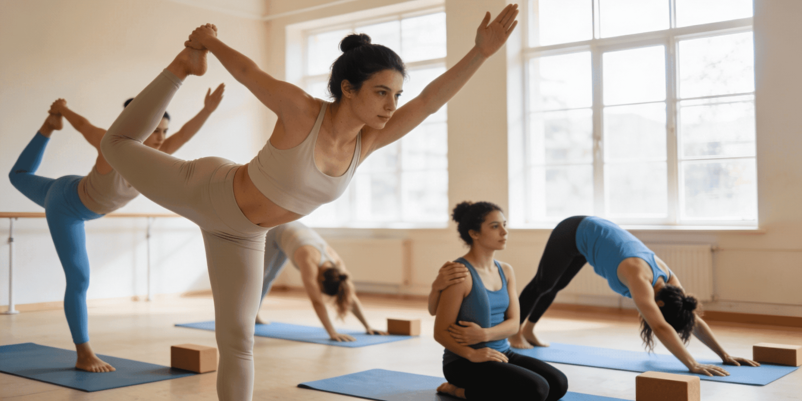 Cours centré sur les bases du Pilates : respiration, placement, contrôle et précision.